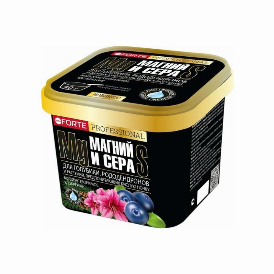 Удобрение водорастворимое рекомендуется в открытом грунте для всех видов и сортов голубики, рододендронов, гортензий, хвойных растений, альпийской розы, садовой черники, клюквы, брусники; в комнатном цветоводстве: для азалий, камелий и других растений, предпочитающих кислую почву. Удобрение содержит полный комплекс веществ, необходимых для полноценного и сбалансированного питания растений. Азот (N) — определяет все ростовые процессы в растениях, способствует наращиванию вегетативной массы. Фосфор (Р) — играет ключевую роль в формировании и росте корневой системы молодых растений, повышает приживаемость после посадки, пересадки, повышает декоративные качества растений и их урожайность. Калий (К) — влияет на адаптацию растений при стрессах, вызванных жарой, холодом, засухой, является стимулятором цветения и плодоношения. Сера — эффективно подкисляет почву, а также поддерживает кислотность почвы, необходимую для выращивания растений предпочитающих кислую почву, способствует развитию мощной корневой системы. Магний — предотвращает хлороз и пожелтение листьев и хвои. Железо — способствует повышению урожая, улучшению качества плодов и декоративного вида растений. Основное внесение: удобрение равномерно рассыпают по поверхности почвы и проводят вспашку или перекопку, или рыхление. При посадке: в сухом виде удобрение вносят в лунки и перемешивают с почвой. При посадке саженцев пподово-ягодных и декоративных культур удобрение перемешивают с почвой, вынутой из посадочной ямы. В жидком виде: удобрение растворяют в воде в соответствии с нормами из таблицы регламента и поливают растения при посадке. Подкормки: в сухом виде удобрение равномерно распределяют между рядами растений (в междурядьях) или по поверхности почвы с последующей заделкой удобрений рыхлением. После подкормок растения рекомендуется обильно полить. В жидком виде: удобрение растворяют в воде в соответствии с нормами из таблицы регламента и проводят корневую подкормку. Подкормка производится 4-6 раз с интервалом 10-15 дней в течение вегетационного сезона. Комнатные растения: корневая подкормка с марта по октябрь один раз в 10-15 дней, с ноября по февраль один раз в 1-1,5 месяца. Растения, находящиеся в осенне-зимний период в фазе цветения, подкармливайте 1 раз в неделю. Мерная ложка внутри упаковки вмещает 40 г удобрения. Состав: (NPK): азот (N) — 8 %, фосфор (P2O5) — 8 %, калий (K2O) — 18 %, S: сера — 41%. Мg: магний — 4%, Fe: железо хелатной (легкоусваиваемой) форме.