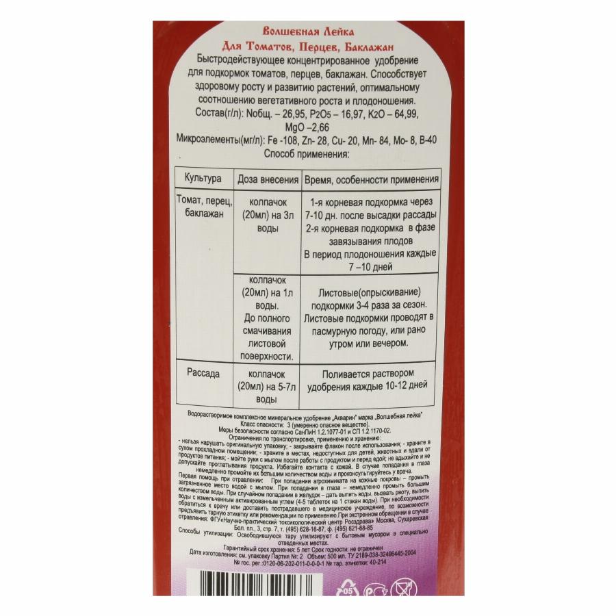 МИНЕРАЛ/УД ВОЛШЕБНАЯ ЛЕЙКА ДЛЯ ТОМАТОВ 500 МЛ буйский хим.завод