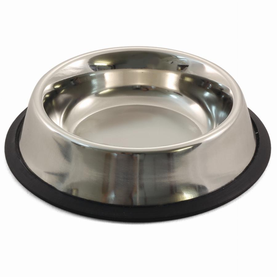 Универсальная круглая миска для собак выполнена из нержавеющей стали. Она идеально подходит как для воды, так и для корма разной консистенции. Миска комфортна для питомца и легко моется под струей проточной воды с использованием моющих бытовых средств. А прорезиненное основание обеспечивает максимальную устойчивость изделия. Размеры: 295*295*70мм