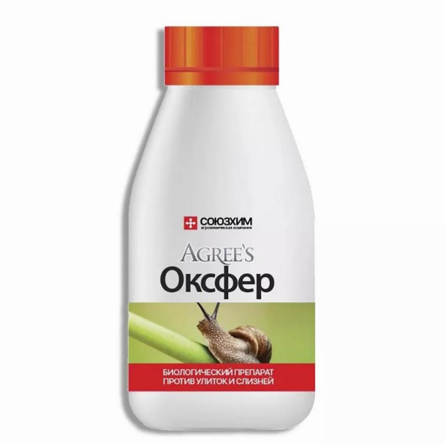 Жидкий препарат «Оксфер» предназначен для борьбы с улитками и слизнями. Действующее вещество — клатратное соединение железа.