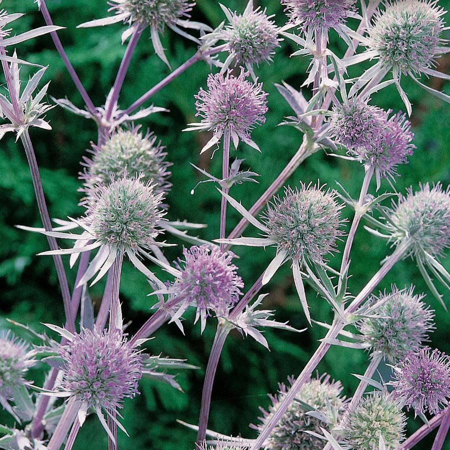 Высота: 1м. Корневищный многолетник с колючими листьями. Период: июнь-июль. Цветение: Цветки в голубых головках. Место: Солнце. Почва: Почва любая садовая, не переносит сырых почв. Засухоустойчив. Сочетается: Гелениум, кореопсис, ромашка, манжетка, тысячелистник.