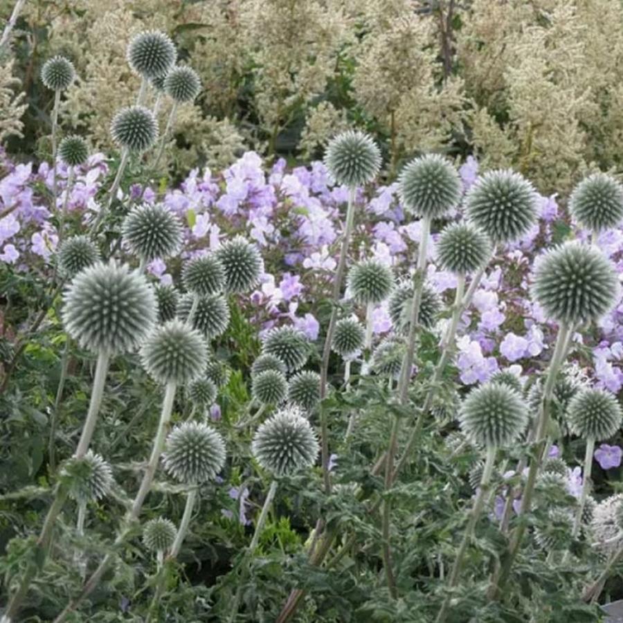 Мордовник баннатийский Star Frost — выделяющееся среди других многолетников, но неприхотливое растение для среднего или заднего плана травянистых или смешанных бордюров. Цветет сферическими, ярко-синими цветочными головами до 5 см с июля по август, листья серо-зеленые, колючие. Очень привлекателен для бабочек и пчел.