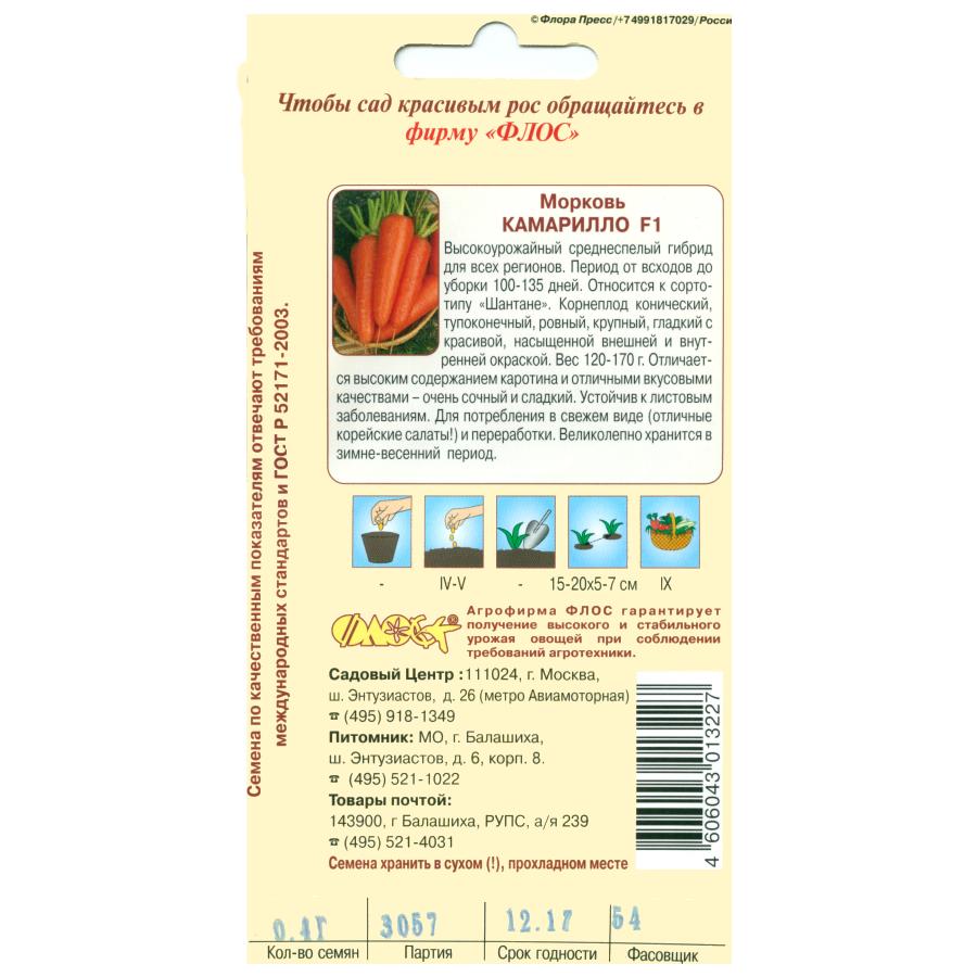 МОРКОВЬ КАМАРИЛЛО F1 0,4 Г флос