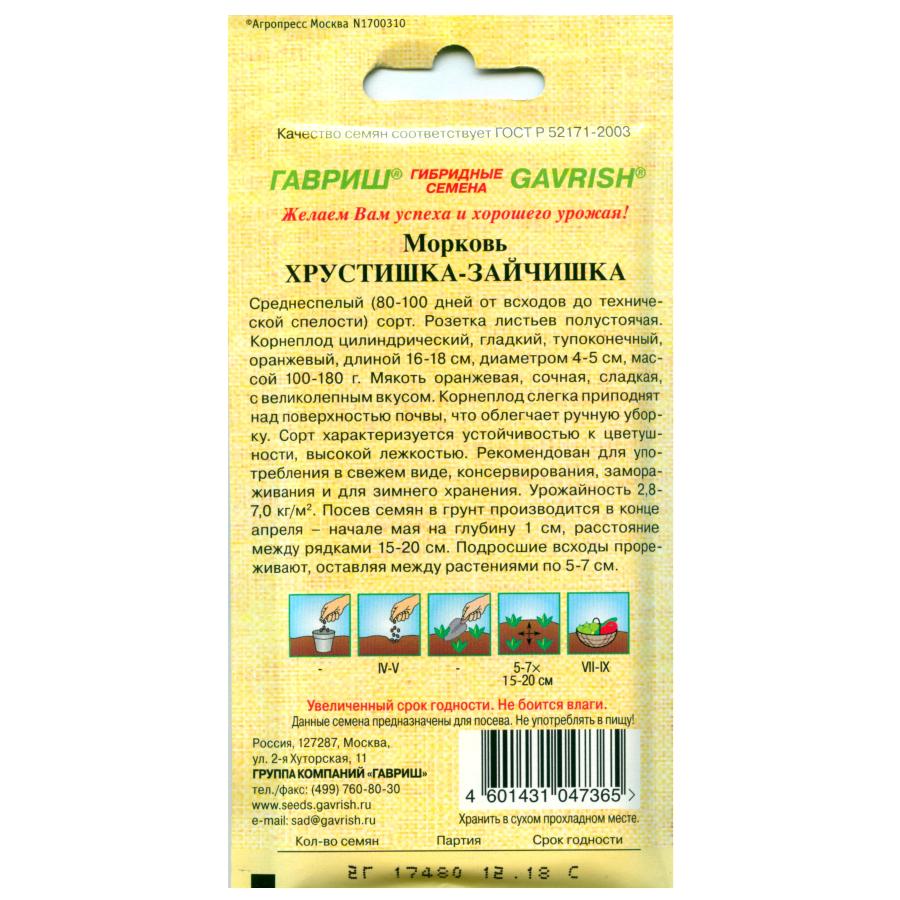МОРКОВЬ ХРУСТИШКА-ЗАЙЧИШКА 2,0 Г гавриш