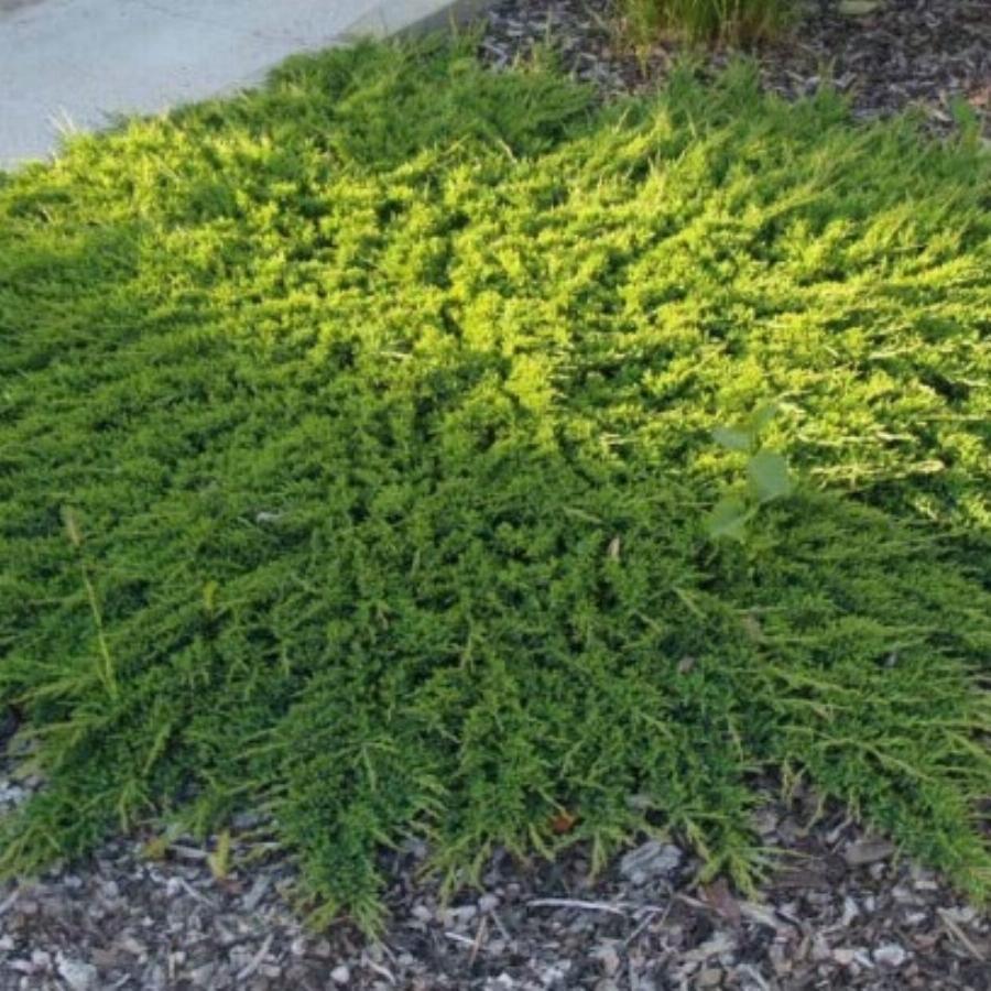 Кустарник высотой до 0,3 м, диаметр кроны 2,5 м. Крона стелющаяся. Кора серо-бурая. Хвоя чешуйчатая, густая, голубая, зимой рыжеватая. Растет медленно. Долговечен. Светолюбив, но переносит легкую тень. Предпочитает достаточно влажные, супесчаные почвы. Имеет красивую форму кроны и окраску хвои. Дымогазоустойчив. Морозостоек. Применяется для одиночных посадок, посадок в группы, на каменистые горки. Используется и как почвопокровное растение.