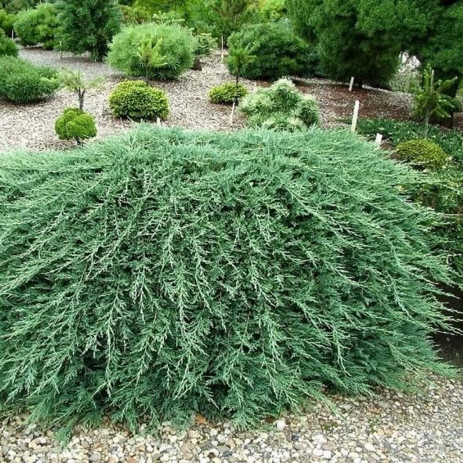 Стелющийся кустарник, достигающий 15 см высоты и ок. 2 м по диаметру. Годовой прирост ок. 15 см. Голубовато -зелёрые ветви, очень гибкие, быстро разветвляются и стелются по земле, образуя густой ‘ковёр’. Рекомендуется для альпинариев, на кладбища, каменные стенки (свисающие побеги) и на откосы, для насаждений в контейнерах. Замечательное покровное растение, на небольшой площади может заменять траву.
