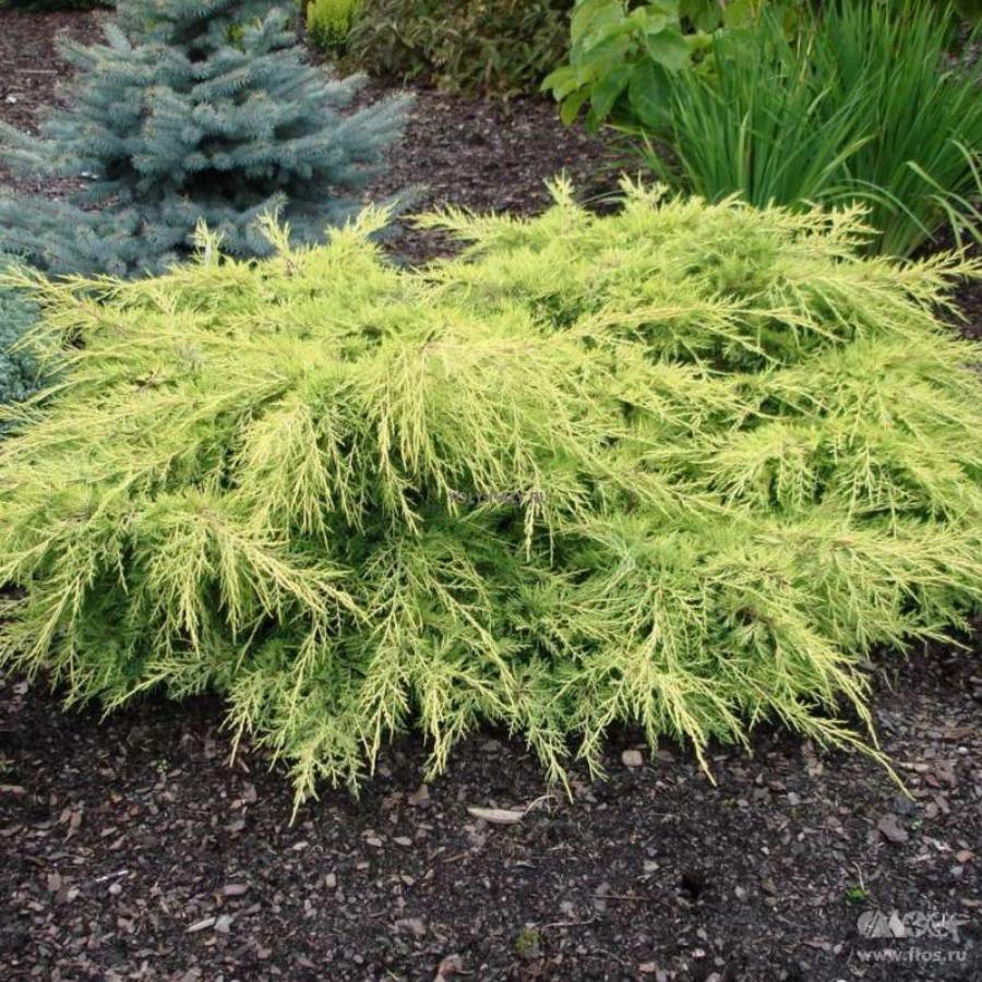 В возрасте 10 лет достигает 1м высоты при диаметре 2-3м. Ежегодный прирост в высоту 5-7 см, в ширину 15-20 см. Крона густая. Хвоя игольчатая, чешуйчатая, молодая золотисто-желтая затем желто-зеленая. Предпочитает плодородные почвы, плохо растет на легких и сухих. Используется как ординар, в группах, альпинариях.