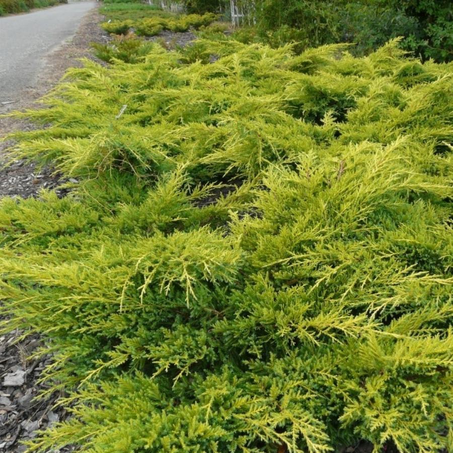 Низкий кустарник, высотой 1 — 1,2 м, шириной 2,5 м. В возрасте 10 лет достигает 0,5 м роста при диаметре 1 м. Хвоя имеет форму иголок или чешуи с яркой золотисто-желтой окраской. Нетребователен к почве и влажности воздуха. Рекомендуется для маленьких приусадебных и каменистых садов.