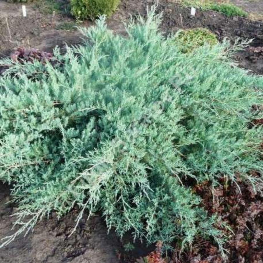 Вечнозеленый кустарник с сильными, диагонально приподнятыми или горизонтально лежащими ветвями и свисающими концами побегов. Достигает высоты 2-3м, диаметра кроны 5-7м. Годовой прирост в высоту 10см, в ширину 10-20см. Образует мясистые, шаровидные, серо-голубые с сизым налетом шишкоягоды, известные как можжевеловые ягоды. Следует знать, что все части растения очень сильно ядовиты! Хвоя чешуйчатая, внутри кроны игольчатая, серо-голубая или серо-зеленая, длиной 0,5-0,7 см. Предпочитает плодородные почвы, не переносит переувлажнения. Светолюбив.