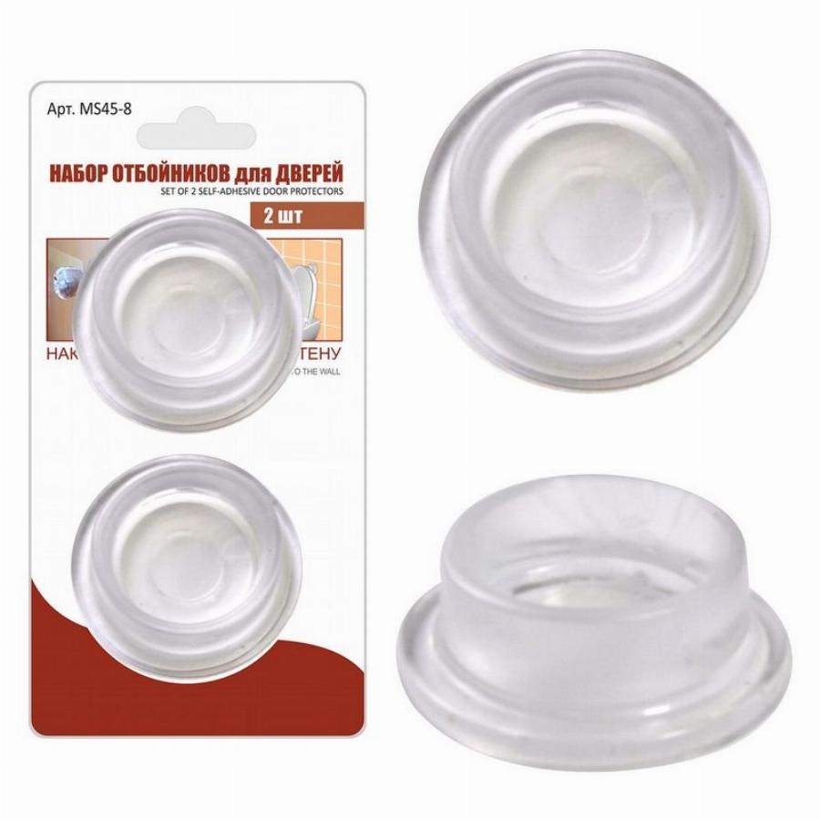 Отбойник для дверей — один из важных элементов дверной фурнитуры. Отбойник фиксируется к полу или к стене, защищает обои и двери от ударов, царапин. Изделие глушит шум и вибрацию от удара. Полотно не повреждается о стену, от резкого удара не вылетят стекла. Отбойник можно использовать также и для крышки для унитаза, чтобы она не ударялась о стенку при каждом открывании. Приспособление изготовлено из полимерного материала (поливинилхлорид), крепится на клеевую основу. Полупрозрачный материал подойдет практически к любому интерьеру и не будет бросаться в глаза.