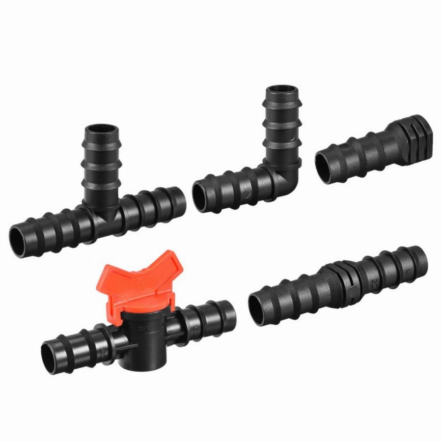 В набор входит: кран 20х20мм -1 шт, тройник 20х20х20мм -3шт, уольник 20х20мм -2шт, соединитель 20х20мм -2шт, заглушка 20мм — 4шт