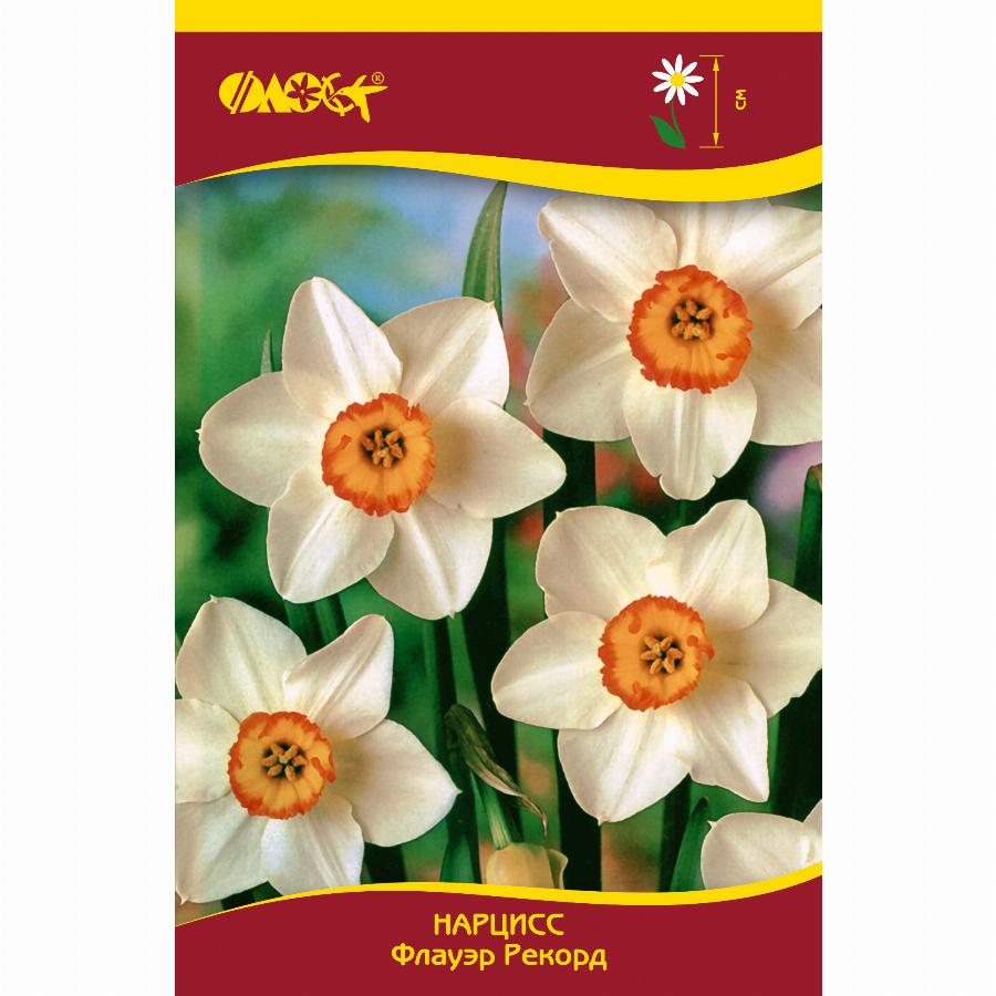 Крупнокорончатый Нарцисс. Цветок крупный с нежным ароматом. Доли околоцветника белые с легким желтоватым налетом, округлые; коронка ярко-желтая, плоская, с яркой оранжево-красной гофрированной каймой.