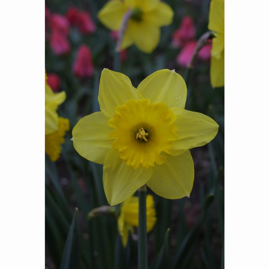 Цветок диаметром до 11-12 см. Золотисто-желтый. Трубка того же цвета, длиной 5,5 см, диаметр 5 см, с отогнутым краем. Цветонос до 40 см. Ранний.