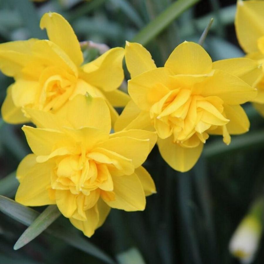 Цветок ярко желтого цвета. В центре цветка махровая коронка из гофрированных лепестков, внешние лепестки широкие, расположены в два ряда. Диаметр 10 см. Высота растения 30-45 см. Посадка — август — начало сентября. Глубина посадки 15-20 см на расстоянии 10-12 см друг от друга. Цветение начинается с середины мая.
