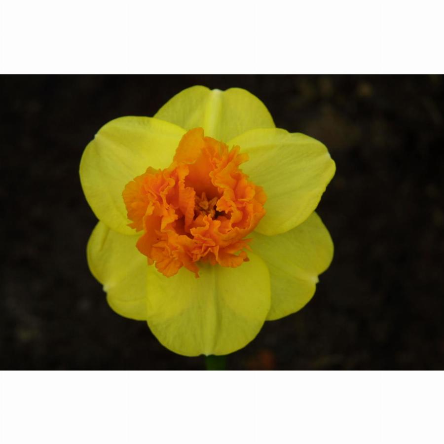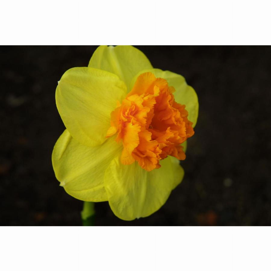 Цветок массивный. Ярко-оранжевая коронка настолько сильно изрезанно-гофрированная, что сорт можно было бы переместить в группу махровых нарциссов. Околоцветник округлый, лимонно-желтый.