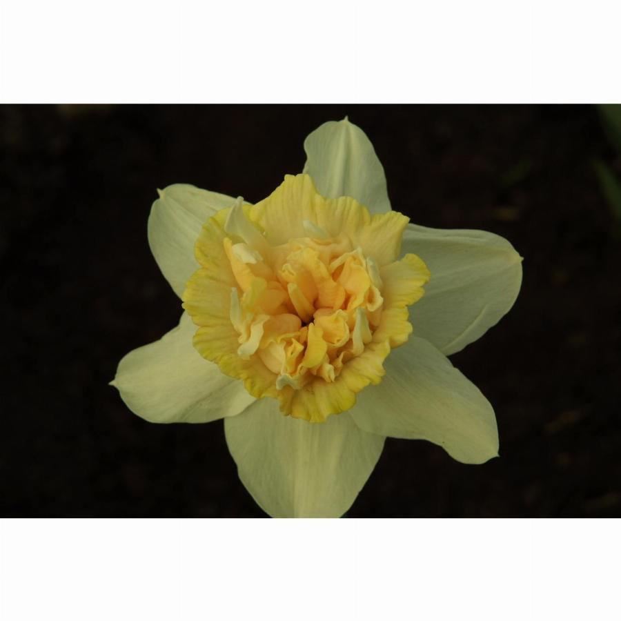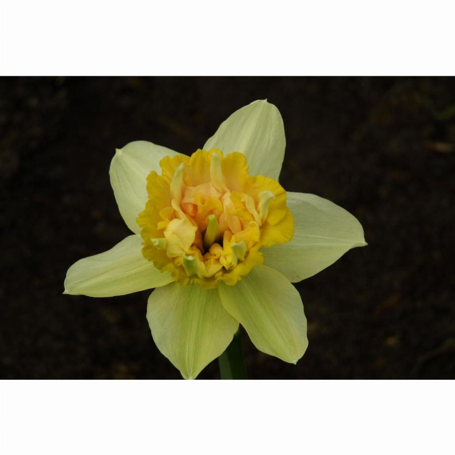 Диаметр цветка до 12 см. Околоцветник зеленовато-кремовый. Доли узкие, в конце цветения отгибаются назад. Коронка крупная, причудливой формы, широковоронковидная, края отогнутые, волнистые.Коронка напоминает широкую низкую корзину, набитую выростами коронки, околоцветника и с шестью длинными «рогами»-тоже выростами околоцветника. Коронка сначала ярко-желтого цвета, в полном цветении-кремово-розовая, при отцветании белая.Цветонос до 30 см. Очень оригинальный, красивый сорт. Срок цветения среднепоздний.