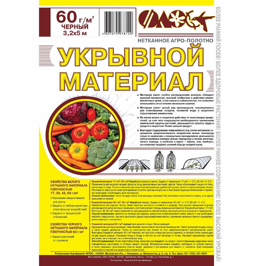 НЕТКАННЫЙ МАТЕРИАЛ УКРЫВНОЙ МАТЕРИАЛ 60 Г/М2 Ч 3,2х5М флос Цена: 285.00 р. Производитель: ФЛОС Страна производства: Россия