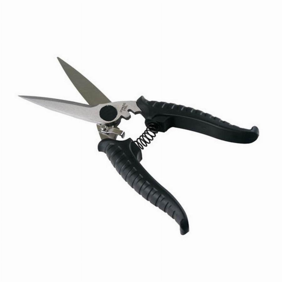 Ножницы универсальные 200 мм. Нержавеющая сталь. Зубчатые лезвия. Режущая способность: 4-х жильные кабели; кожа, текстиль; стальная сетка 0.5 мм; рыболовные сети; садовые работы. Фиксатор-предохранитель. Разводная пружина для облегчения работы. Эргономичные обрезиненные ручки. Сделано в Тайване.