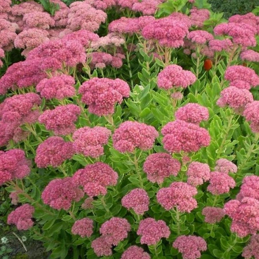 Стебли толстые, прямостоячие, образуют плотный куст высотой 50-60 см. Соцветия розово-красного цвета. Побеги плотно покрыты сочными тёмно-зелёными зубчатыми листьями овальной формы. Цветёт в августе-октябре.