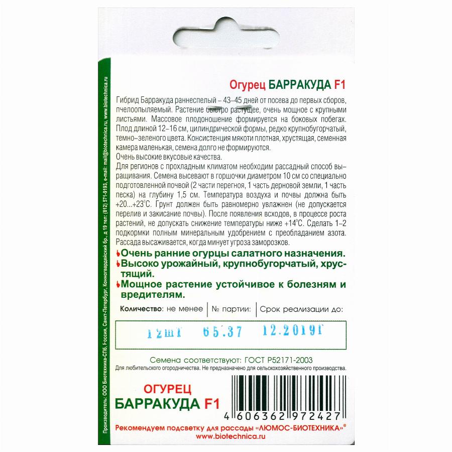 ОГУРЕЦ БАРРАКУДА F1 12 ШТ биотехника