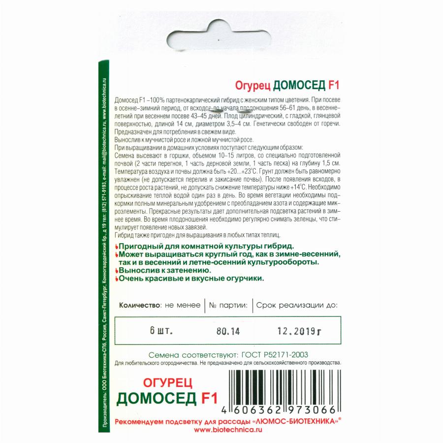 ОГУРЕЦ ДОМОСЕД F1 6 ШТ биотехника