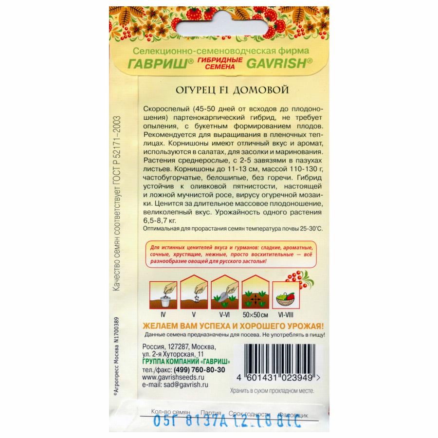 ОГУРЕЦ ДОМОВОЙ F1 0,5 Г гавриш