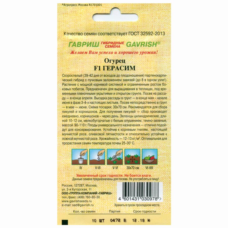 ОГУРЕЦ ГЕРАСИМ F1 10 ШТ гавриш