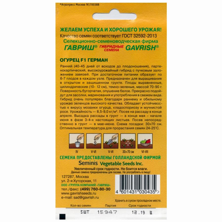 ОГУРЕЦ ГЕРМАН F1 5 ШТ гавриш
