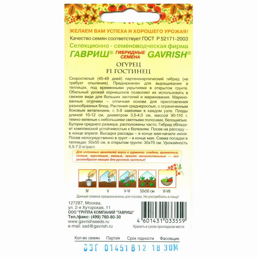 ОГУРЕЦ ГОСТИНЕЦ F1 0,3 Г гавриш