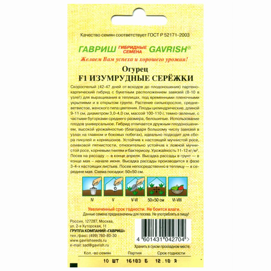 ОГУРЕЦ ИЗУМРУДНЫЕ СЕРЕЖКИ F1 10 ШТ гавриш