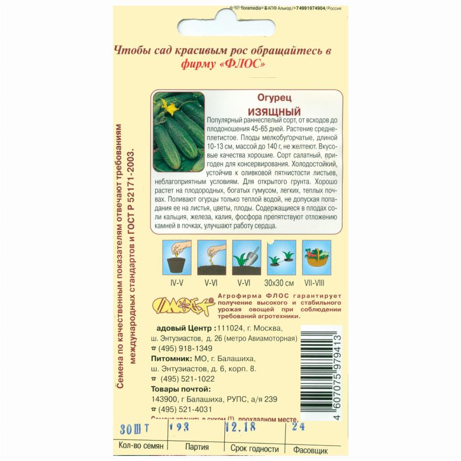 ОГУРЕЦ ИЗЯЩНЫЙ 15 ШТ флос