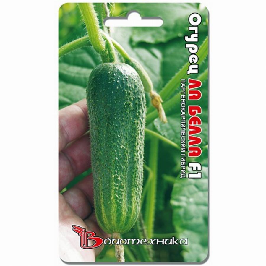 Гибрид Ла Белла F1 раннеспелый — от всходов до первого сбора плодов 45-46 дней. В основном женского типа цветения, завязь букетная — в пазухе 3-4 завязи. Зеленец длиной 5-6 см, цилиндрической формы, мелкобугорчатый, белошипый, зеленый, с короткими светлыми полосами. Консистенция плотная, хрустящая. Для регионов с прохладным климатом необходим рассадный способ выращивания. Семена высевают в торфяные горшочки диаметром 10 см со специально подготовленной почвой (2 части перегноя, 1 часть дерновой земли, 1 часть песка) на глубину 1,5 см. Температура воздуха и почвы должна быть 20-23°С. Грунт должен быть равномерно увлажнен (не допускается перелив и закисание почвы). После появления всходов, в процессе роста растений, не допускать снижение температуры ниже 14°С. Сделать 1-2 подкормки полным минеральным удобрением с преобладанием азота. Рассада высаживается, когда минует угроза заморозков. Гибрид является продолжением селекционной работы с родительскими формами популярного гибрида Либелле F1. Обладает быстрым ростом, однако растение не зарастает и легко в уходе. Обладает очень высокой устойчивостью к грибковым, бактериальным и вирусным заболеваниям огурца. Плоды долгое время не желтеют после сбора 3,5-4 недели, пригоден для потребления в свежем виде и консервирования.