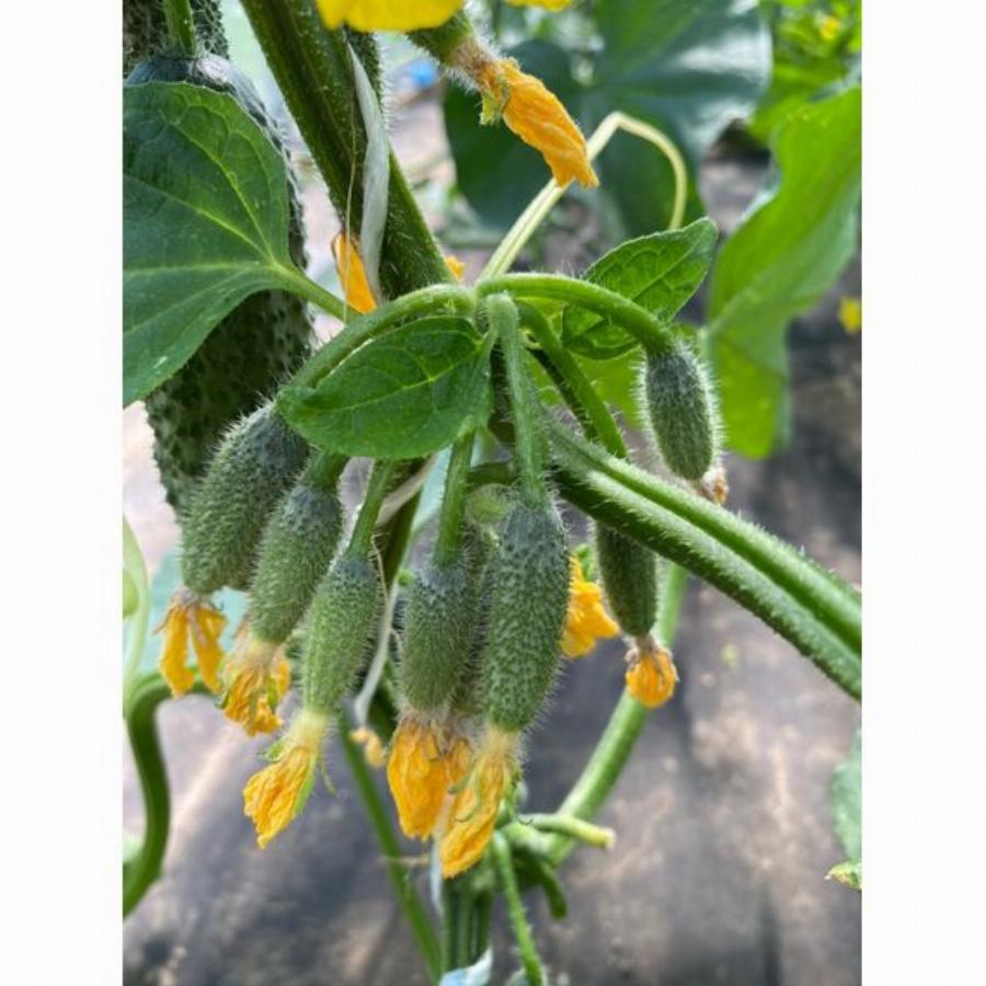Раннеспелый партенокарпический гибрид с пучковой завязью и женским типом цветения. В плодоношение вступает на 45-й день от полных всходов. Растение плетистое, средневетвистое. Зеленцы удлиненно-цилиндрической формы с округлой вершиной, слаборебристые, с небольшими бугорками и короткими светлыми полосками. Опушение плодов белого цвета, масса 80-100 г. В пазухах закладывается от 5 — 10 и более огурчиков. Оптимальная длина для сбора зеленцов 11-12 см. Зеленцы долго не перерастают, сохраняя свои вкусовые и товарные качества на высоком уровне. Мякоть плодов сочная, плотная, хрустящая, сладкая, очень ароматная, без пустот и без горечи. Плоды великолепны в свежем виде и в консервации. Гибрид устойчив к оливковой пятнистости, огуречной мозаики, настоящей и ложной мучнистой росе, вирусу желтой мозаике, а также к перепадам температур. Плотность посадки 3 растения/м?. Урожайность более 14,0 кг/м?.