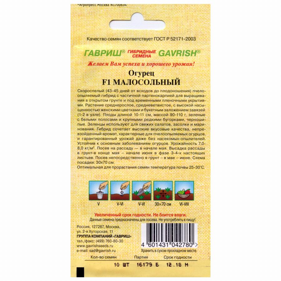 ОГУРЕЦ МАЛОСОЛЬНЫЙ F1 10 ШТ гавриш