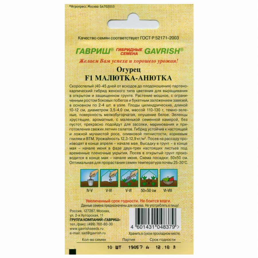 ОГУРЕЦ МАЛЮТКА-АНЮТКА F1 10 ШТ гавриш