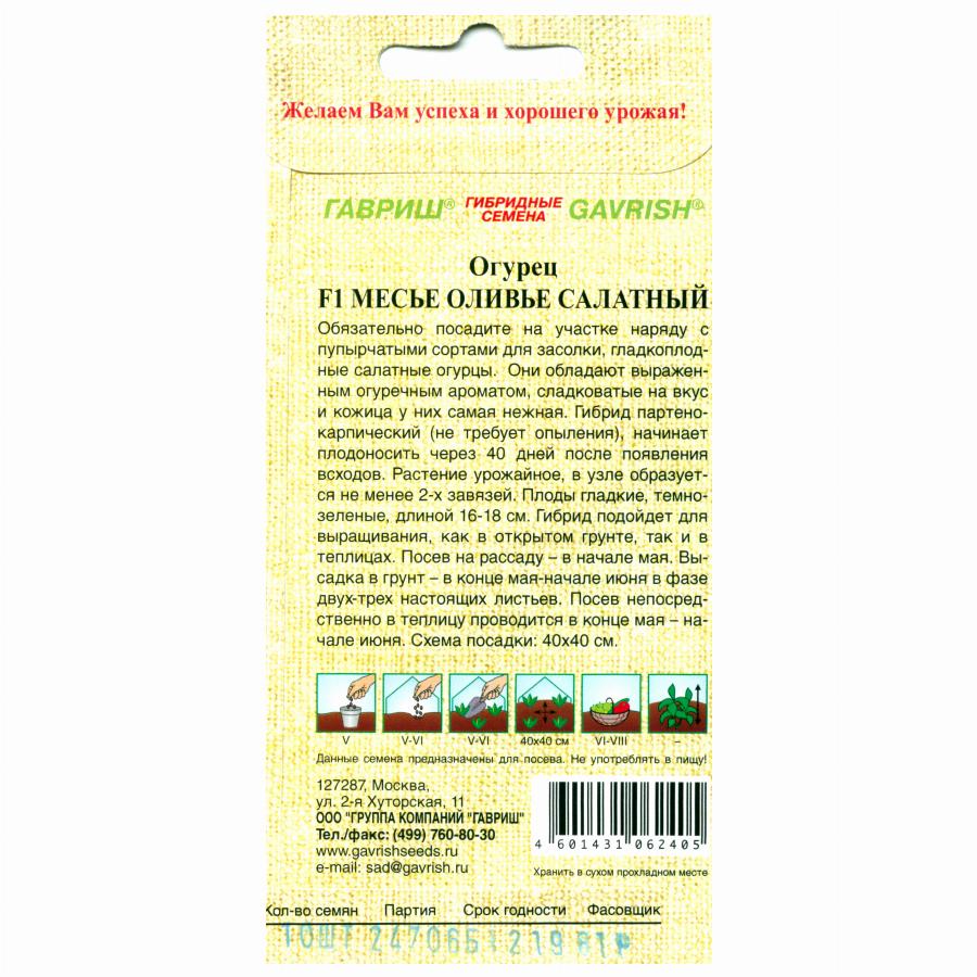 ОГУРЕЦ МЕСЬЕ ОЛИВЬЕ САЛАТНЫЙ F1 10 ШТ гавриш