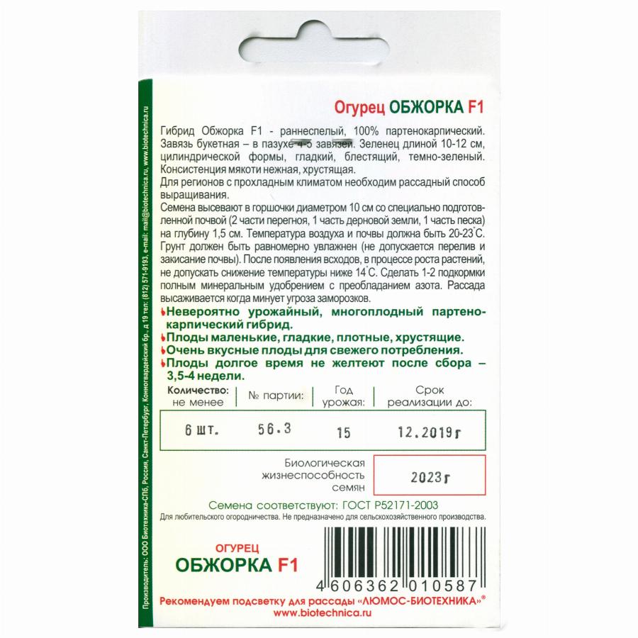 ОГУРЕЦ ОБЖОРКА F1 6 ШТ биотехника