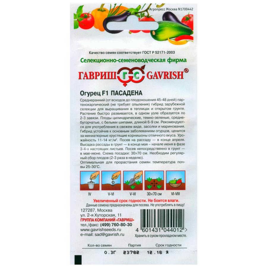 ОГУРЕЦ ПАСАДЕНА F1 0.3 Г гавриш