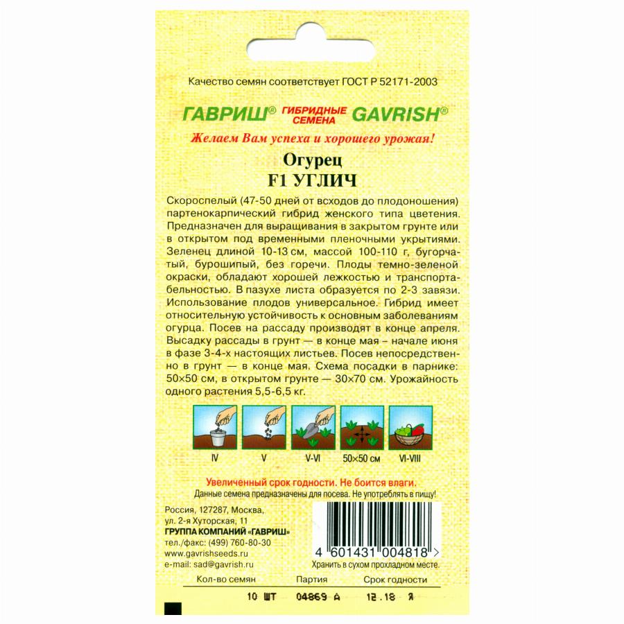 ОГУРЕЦ УГЛИЧ F1 10 ШТ гавриш