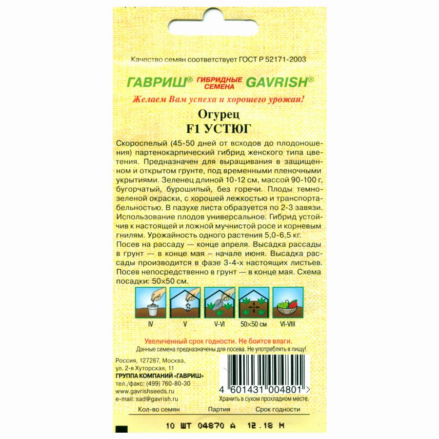 ОГУРЕЦ УСТЮГ F1 10 ШТ гавриш