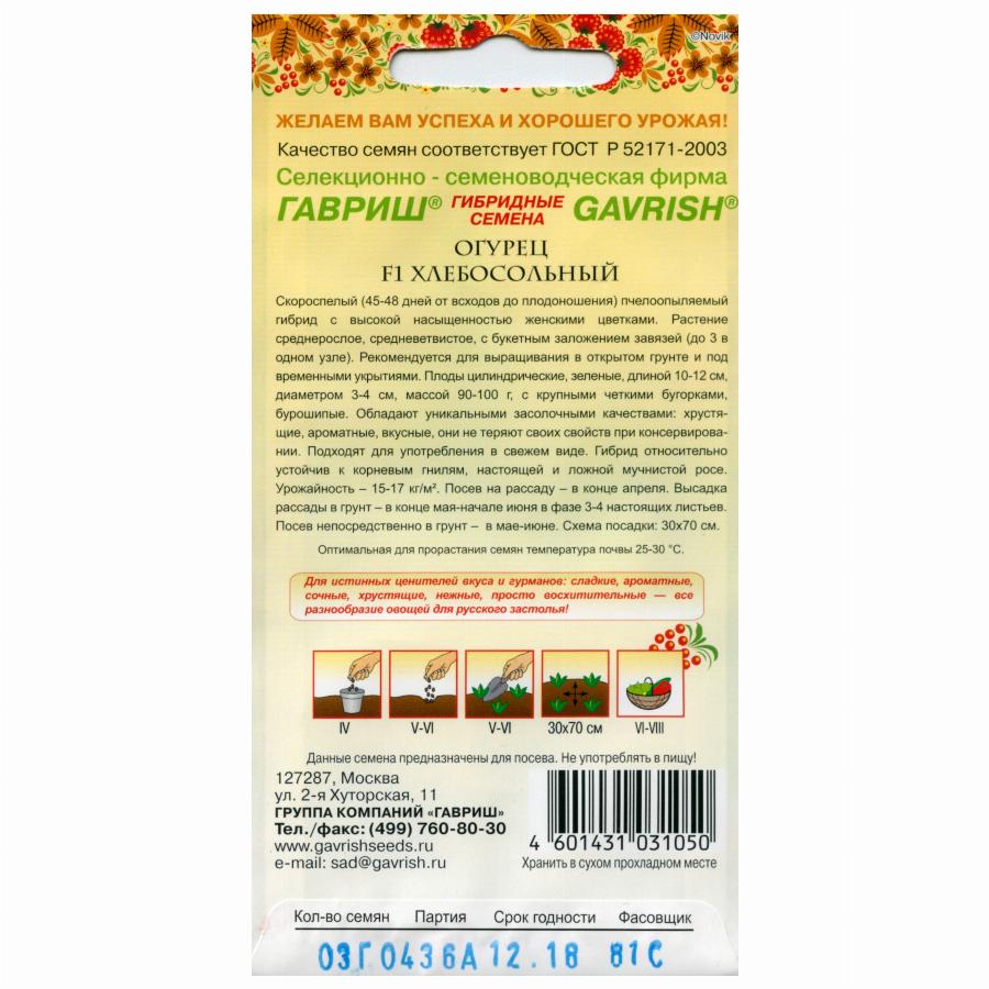 ОГУРЕЦ ХЛЕБОСОЛЬНЫЙ F1 0,3 Г гавриш