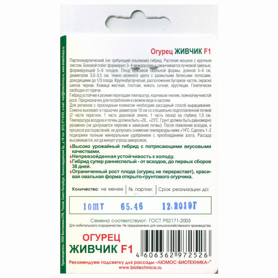 ОГУРЕЦ ЖИВЧИК F1 10 ШТ биотехника