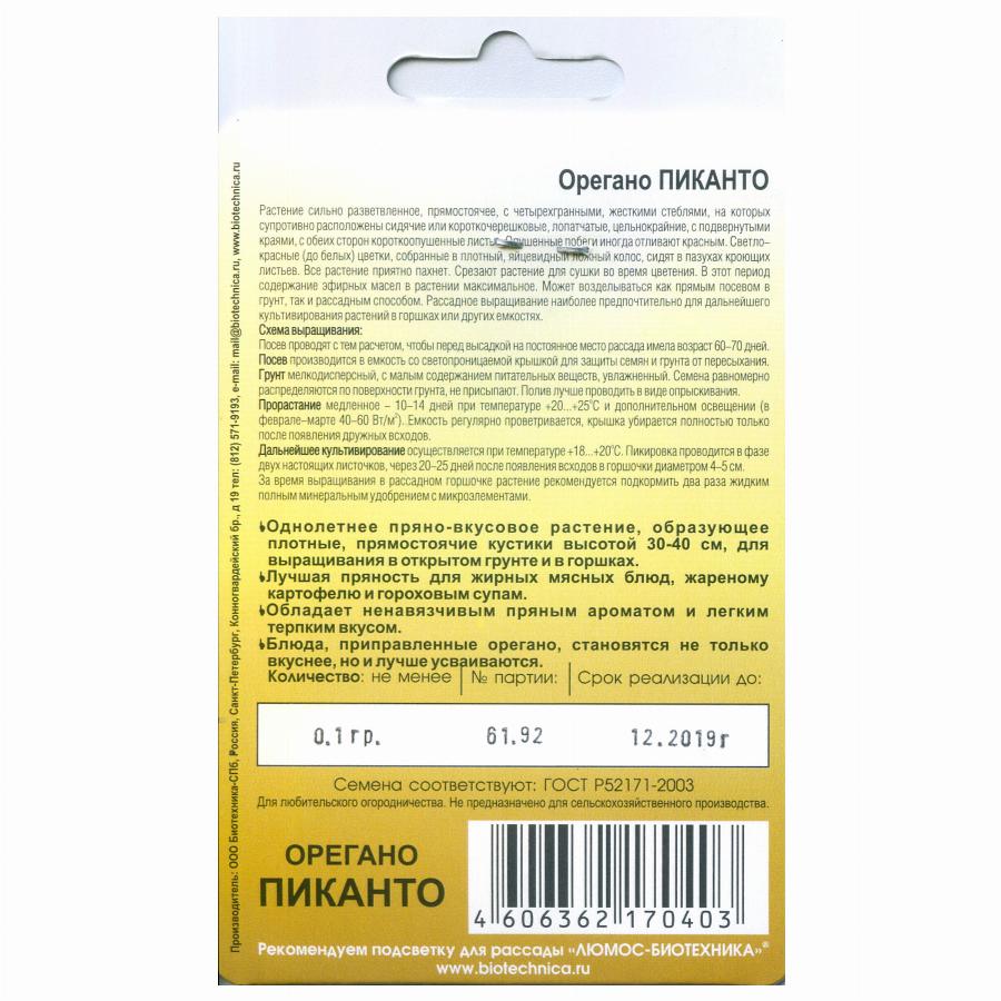ОРЕГАНО ПИКАНТО 0,3 Г биотехника