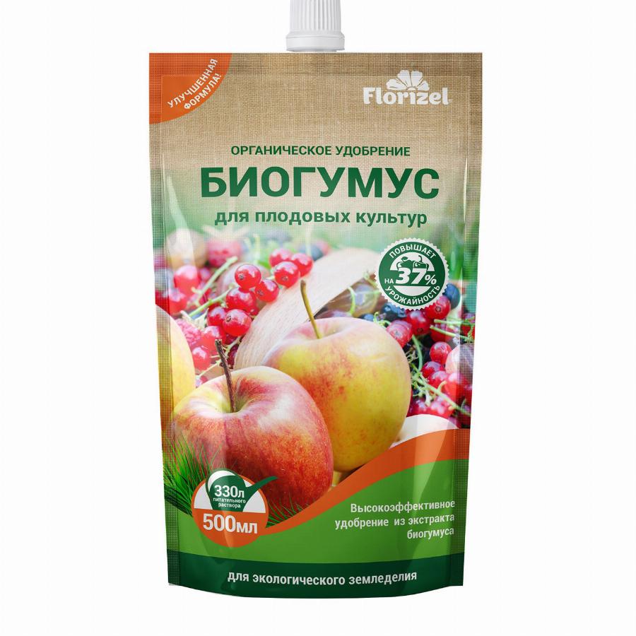 Биогумус для плодовых культур — гелеобразное органическое удобрение, изготовленное на основе экстракта биогумуса, с быстрым эффектом применения и длительным действием. В составе удобрения уникально сочетаются природные гуминовые и фульвокислоты, почвенные бактерии, фитогормоны и другие биологически активные вещества, макро- и микроэлементы. Все действующие вещества удобрения находятся в составе легкодоступных для растений органических комплексов. Улучшает приживаемость саженцев. Увеличивает количество завязей. Способствует быстрому росту и развитию плодов. Повышает устойчивость к грибковым и бактериальным болезням.