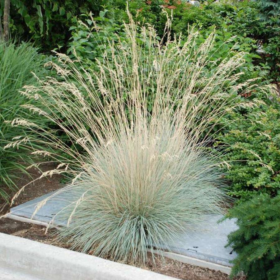 Овсец является самой высокой травой с синим окрасом. Корневая система глубоко залегающая, мочковатая. Компактный куст, около 0,5 м высотой, на плодородной почве разрастается около 1 м в диаметре. Лист у овсца линейный, узкий, от серовато-зеленого до синевато-серого цвета. Овсец имеет соцветия серо-зеленого окраса, в метелках на прямом стебле, до 1,5 м. Цветет овсец в июле.