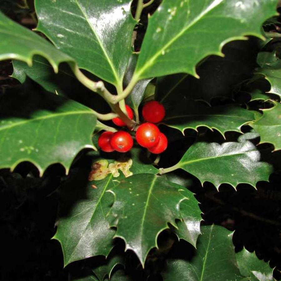 Невысокое растение с компактной кроной. Листва плотная, кожистая, темно-зеленая, по краю усеяна шипами. Очень теневыносливая форма. Декоративность в осенне-зимний период выражена обильным, ярким плодоношением.