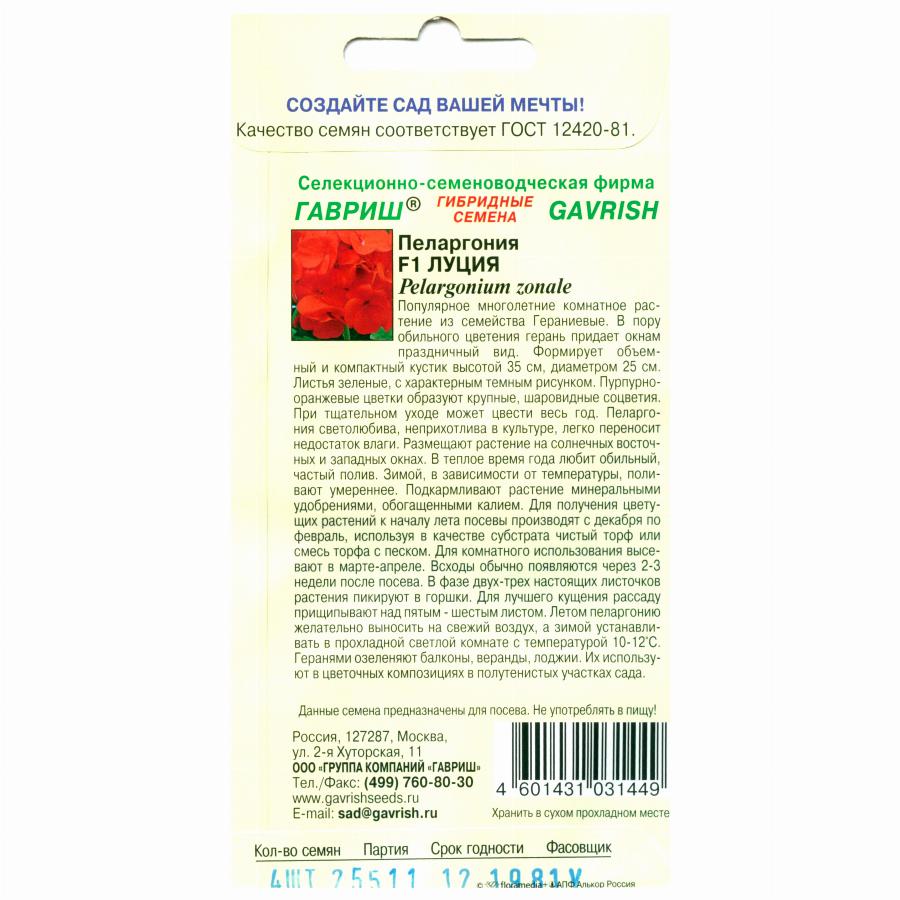 ПЕЛАРГОНИЯ ЗОНАЛЬНАЯ ЛУЦИЯ F1 4 ШТ гавриш
