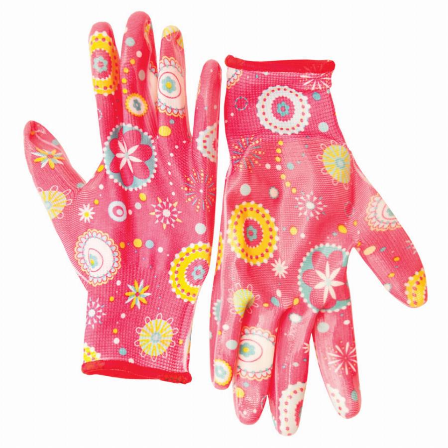 Перчатки садовые. Материал: полиэстер с прозрачным нитриловым гладким покрытием. Хар-ка: кислото- и щелочестойкие, износостойкие, тонкие (с хорошей чувствительностью пальцев). Используются: в саду, а также в нефтеперерабатывающей, химической промышленности, при работе с электрооборудованием, в сельском хозяйстве и т.д.