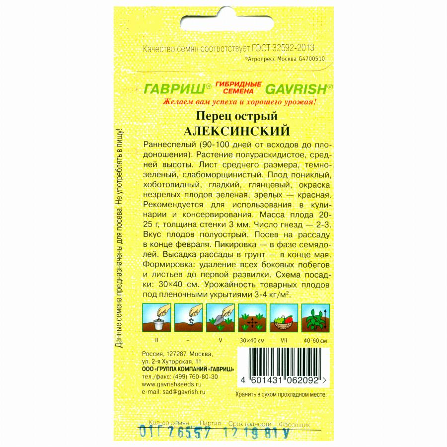 ПЕРЕЦ ОСТРЫЙ АЛЕКСИНСКИЙ 0,1 Г гавриш