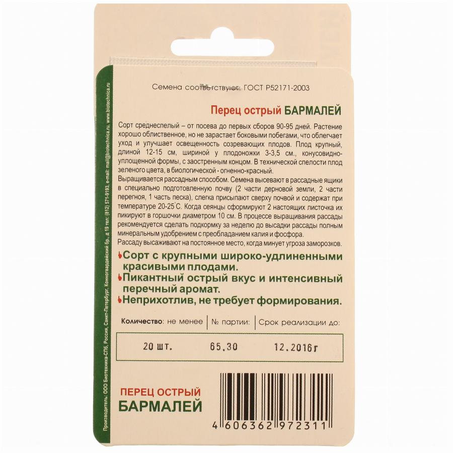 ПЕРЕЦ ОСТРЫЙ БАРМАЛЕЙ 20 ШТ биотехника